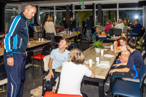Er werd fanatiek gespeeld in 3 speelsterktes: rood, oranje en groen. Precies op het moment dat alle wedstrijden klaar waren en de pannenkoeken warm op tafel stonden, kwam de regen met bakken uit de lucht. … wat een geluk en wat smaakten de pannenkoeken lekker! Met dank aan de bakkers: Svenja, Louise, Martine en Luuk!