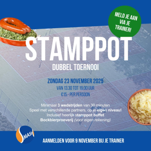 Na het spelen schuiven we gezellig aan voor een heerlijk buffet en sluiten we de dag af met een gezamenlijke nieuwjaarsproost. De perfecte combinatie van sportiviteit en gezelligheid!